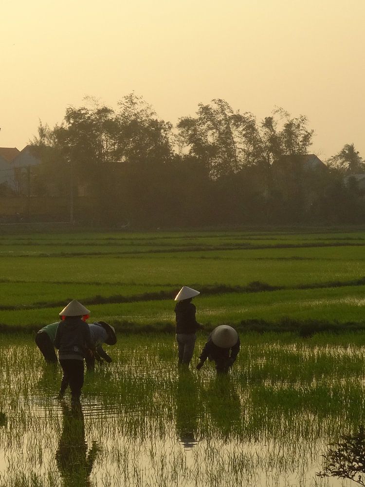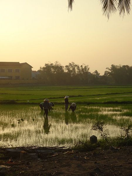 Bestelle das Foto boerinnen op rijstveld von diana stubbe als Reproduktion auf Leinwand, Alu-Dibond, als Poster, Fototapete oder Acrylglasbild.