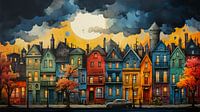 Bestelle das digitale Kunst Bild bunte Häuser abstrakte Kunst von Animaflora PicsStock als Reproduktion auf Leinwand, Alu-Dibond, als Poster, Fototapete oder Acrylglasbild.