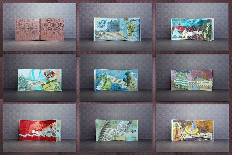 Nennen Sie es Mixed Media, nennen Sie es Collagen: Was ich mache, ist das, was die Arbeit selbst verlangt. Manchmal viele Bilder, manchmal gezeichnet und koloriert, manchmal ein Hintergrund aus Aquarellfarben, manchmal aus Gelli-Drucken, manchmal mit Schablonen, manchmal mit Text. Manchmal ist eine Farbe der Ausgangspunkt, manchmal ein bestimmtes Bild, manchmal ein Text, eine Geschichte oder einfach das Bedürfnis, Motive zu färben oder sogar Nadel und Faden zu benutzen. So…