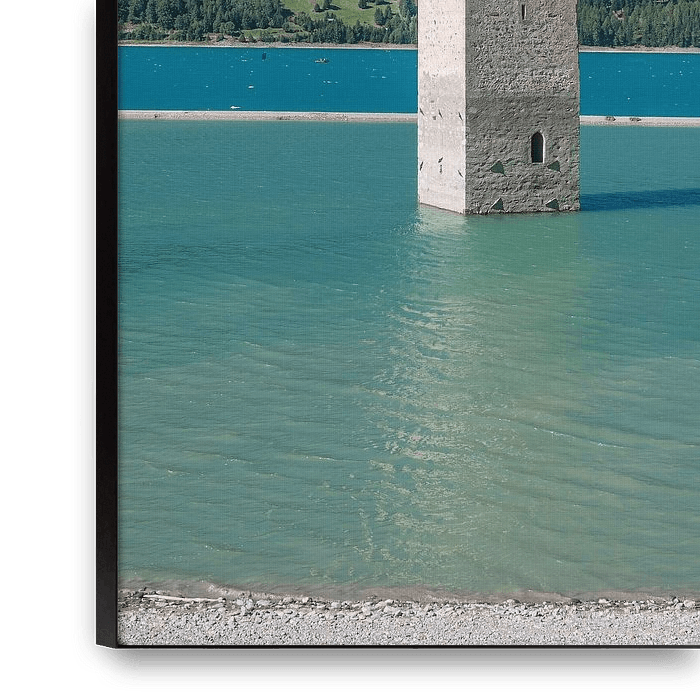 Bestelle das Foto der Kirchturm im Reschensee von Peter Eckert als Reproduktion auf Leinwand, Alu-Dibond, als Poster, Fototapete oder Acrylglasbild.