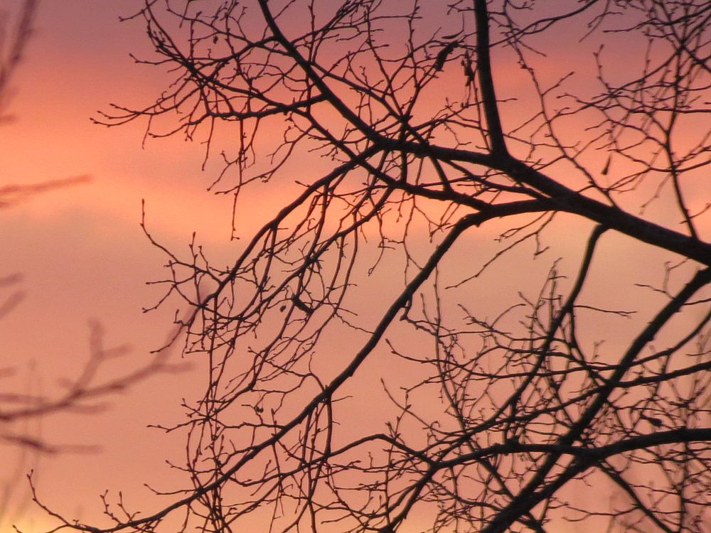 mooie takken van bomen voor een ondergaande zon, mooi warm plaatje.