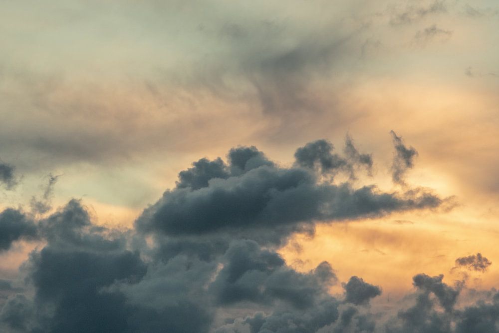 dramatischer Himmel mit dunklen Wolken und Sonne