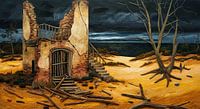 eine Turmruine in den Dünen, ein Gewitter im Hintergrund