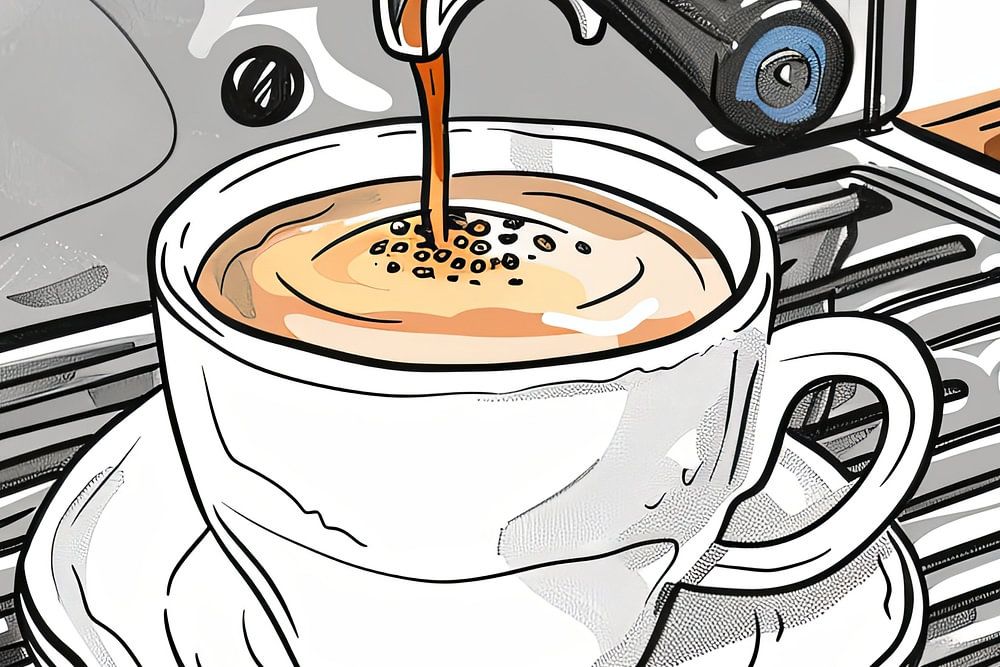 digitales Bild der Zubereitung einer Tasse Kaffee oder Cappuccino in einem Gastronomiebetrieb oder einfach zu Hause mit einer Kaffeemaschine