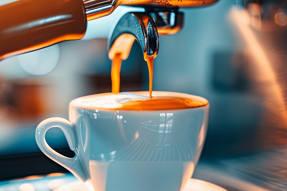 digitales Bild der Zubereitung einer Tasse Kaffee oder Cappuccino in einem Gastronomiebetrieb oder einfach zu Hause mit einer Kaffeemaschine