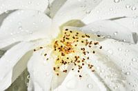 Bestelle dieses Blumen-Wandbild eine weisse Rose mit Regentropfen von Werner Lehmann als Reproduktion auf Leinwand, Alu-Dibond, als Poster, Fototapete oder Acrylglasbild.