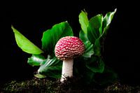 Ein einsamer runder Fliegenpilz auf dem Rivierenhof in Deurne.