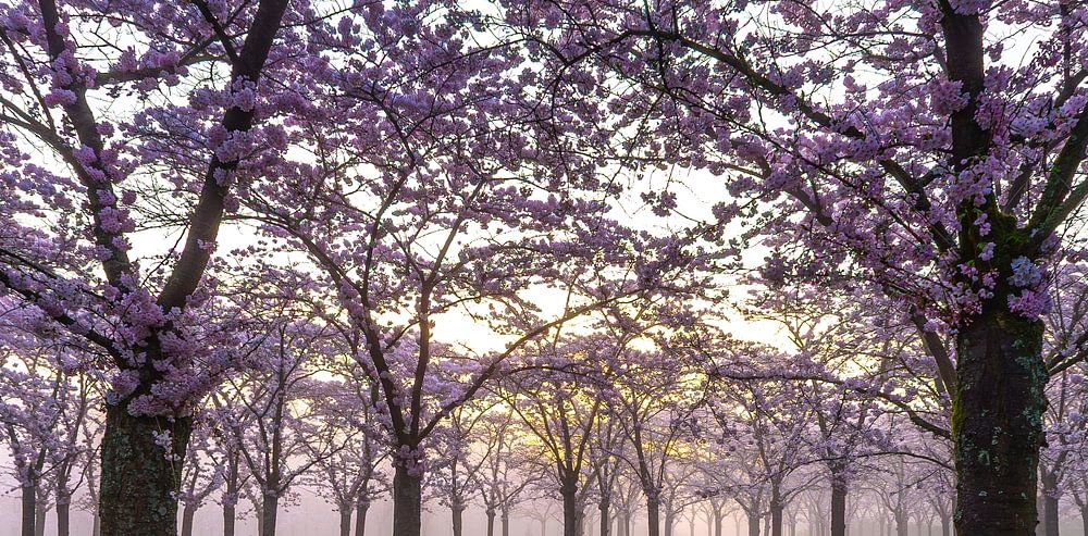 Diese Fotos wurden am 25. März 2025 aufgenommen. Es war ein nebliger Morgen, der eine mystische Atmosphäre schafft. Ich war schon um 6 Uhr morgens hier, weil es dann noch ruhig ist. Zuerst habe ich Nebelaufnahmen gemacht'und dann gewartet, bis die Sonne durchbricht. Dann bekommt man Sonnenharfen und dann lange Schatten. Ich habe auch Fotos mit Menschen gemacht, die zeigen, wie sie den Blütenpark erleben.