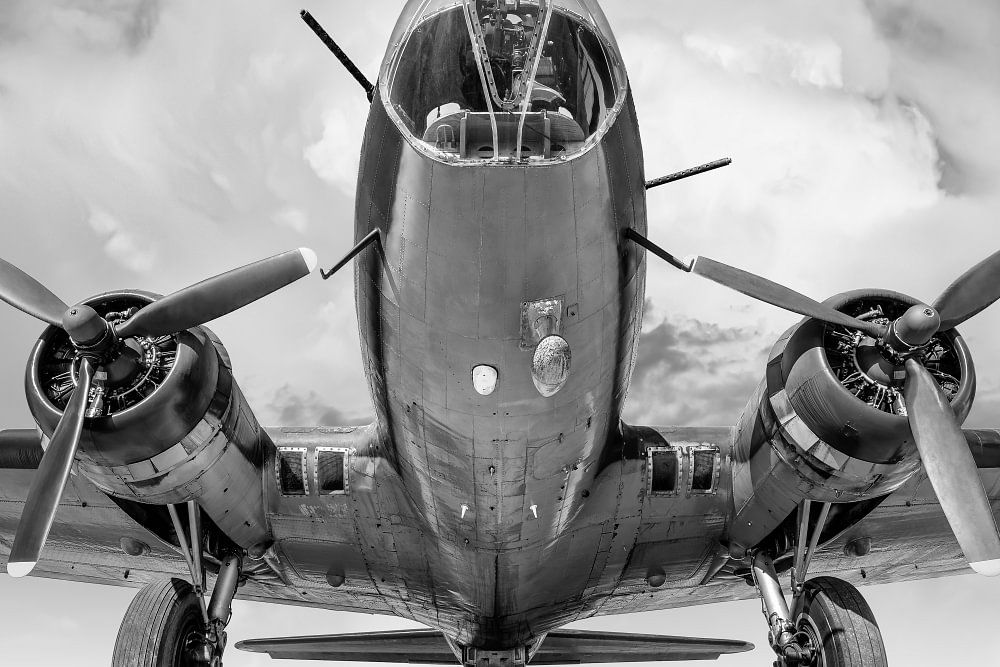 historischer bomber vor einem dramatischem himmel