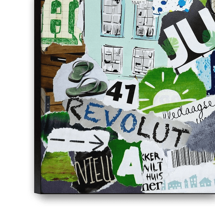 Collage aus altem Papier mit Vintage-Retro-Thema und Farbkonzept. Die Farben Grün und Blau.
