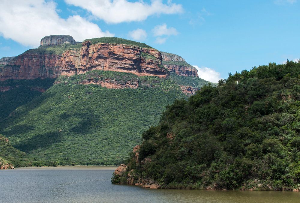 Über "het meer bij de swadini dam met op de achtergrond de drakensbergen"