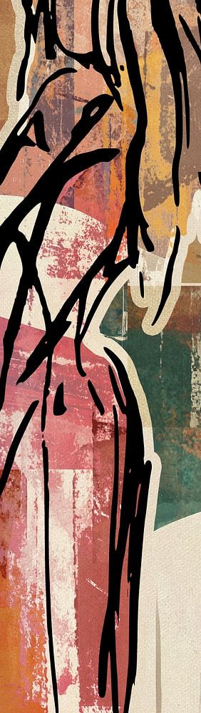 Ein Kunstwerk, das sich perfekt für schmale Wände eignet. Ein hohes und schmales Kunstwerk, das mit digitalen Techniken auf der Grundlage einer handgezeichneten Zeichnung erstellt wurde. Dieses farbenfrohe Kunstwerk ist ein absoluter Blickfang für die schmale Wand an Ihrer Wand. Es ist in Rosa-, Beige-, Ocker-, Grün- und Blautönen…