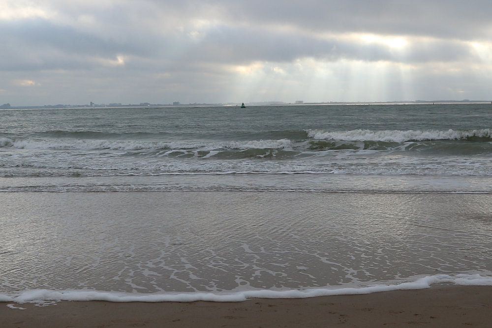 sonnenuntergang am strand von vlissingen in den niederlanden
