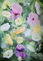 Bestelle dieses Blumen-Wandbild im Garten träumen von Hilleke Scheper als Reproduktion auf Leinwand, Alu-Dibond, als Poster, Fototapete oder Acrylglasbild.