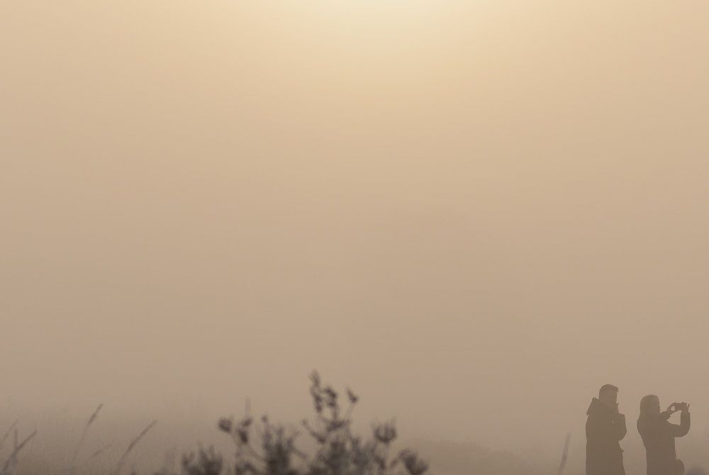 ein Paar fotografiert mit dem nebligen Gemeindegebiet von Strabrecht.