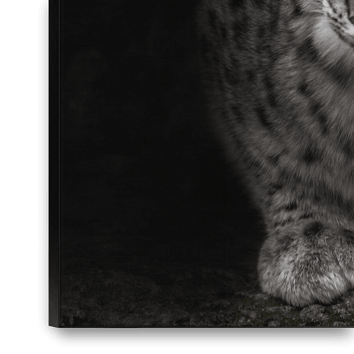 Bestelle das Foto ironischer Luchs auf dunklem Hintergrund in der Nacht, helle Augen glühen gelb Körper verfärbt. Schw von Michael Semenov als Reproduktion auf Leinwand, Alu-Dibond, als Poster, Fototapete oder Acrylglasbild.