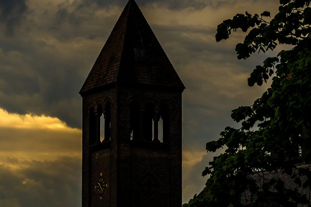 kirche in ulft bei nacht mit schönem himmelgebäude