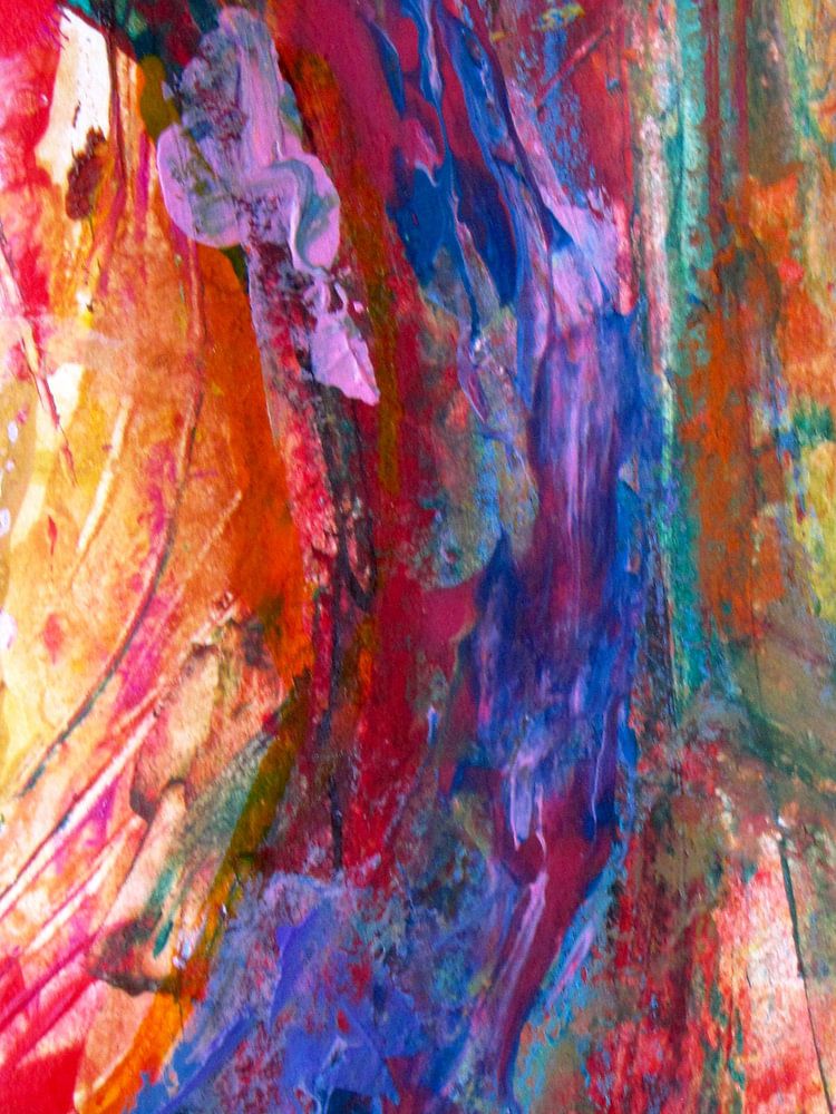 Uitsnede van schilderij Geel. Acryl op papier 50x65. De kleur en de beweging bepalen het beeld.