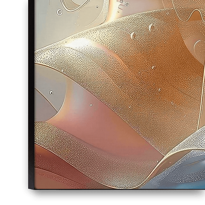 Bestelle dieses abstrakte Wandbild magische Formen in blau-gold-silber-rosa von Gelissen Artworks als Reproduktion auf Leinwand, Alu-Dibond, als Poster, Fototapete oder Acrylglasbild.
