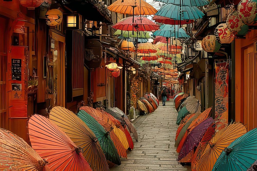 malerische japanische Kunst mit leuchtenden Farben und feinen Details