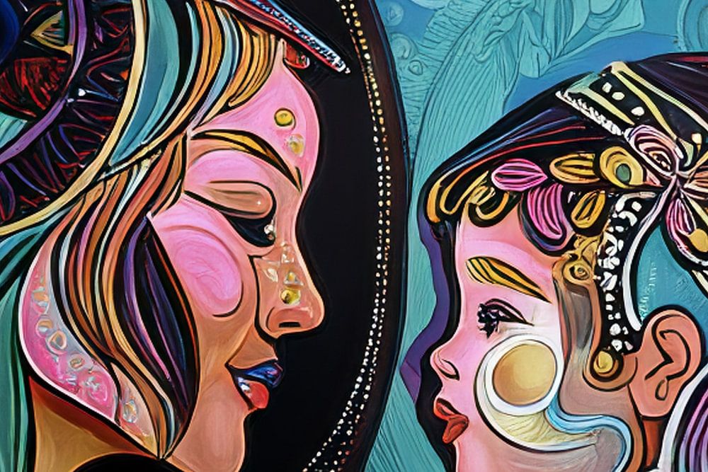 Digitales malerisches Bild einer surrealen fiktiven Person(en) in einer Fantasiewelt