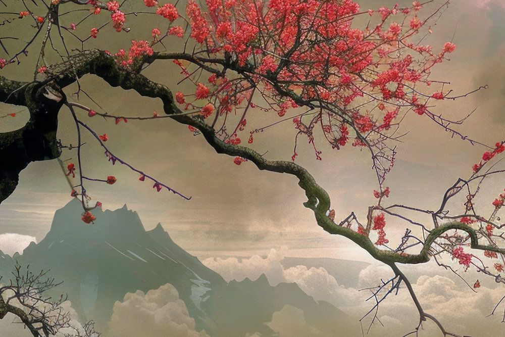 Digitales malerisches Bild von fiktiven Personen oder Landschaften aus Japan