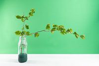 Zweige der Hasel in einer Vase mit grünem Hintergrund