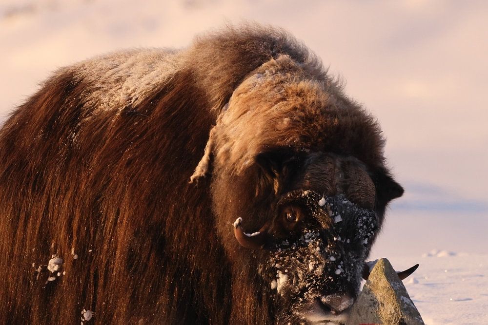 musk ox in the first morning light in winter in Dovrefjell-Sunndalsfjella National Park Norway