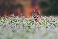 In het voorjaar staat het boekweit in bloei. Het is altijd een mooi gezicht als er tussen de witte bloemetjes reeën lopen.