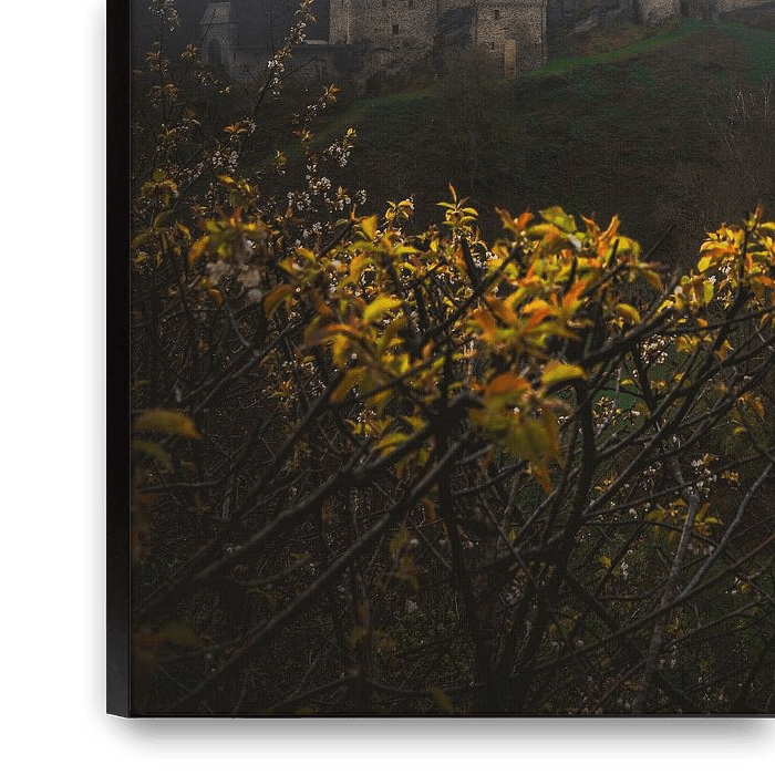 Bestelle dieses Blumen-Wandbild romantische Burg von Rene scheuneman als Reproduktion auf Leinwand, Alu-Dibond, als Poster, Fototapete oder Acrylglasbild.