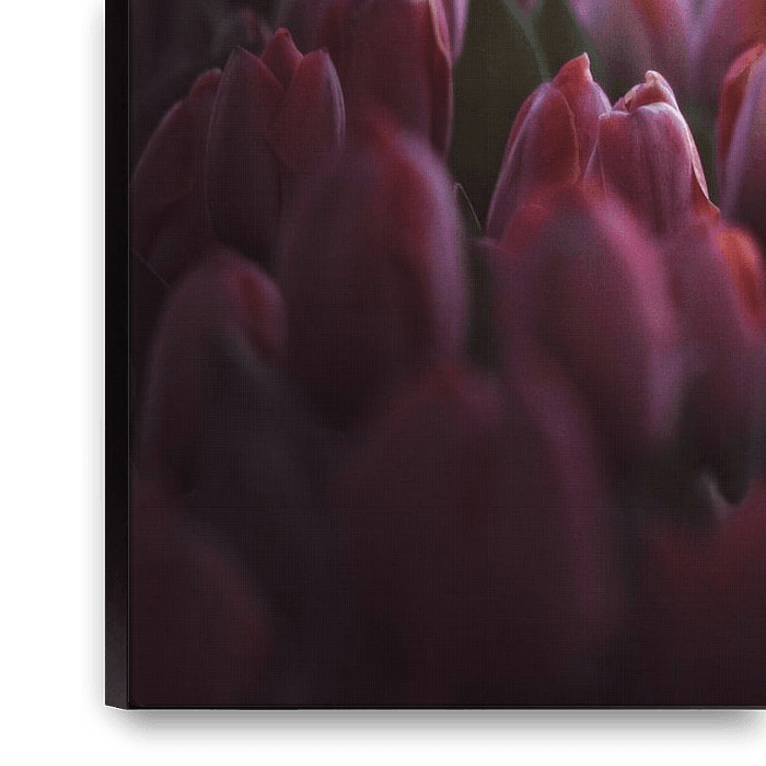 Bestelle das Foto rosa Tulpen in der Morgensonne von Marijke Groos als Reproduktion auf Leinwand, Alu-Dibond, als Poster, Fototapete oder Acrylglasbild.