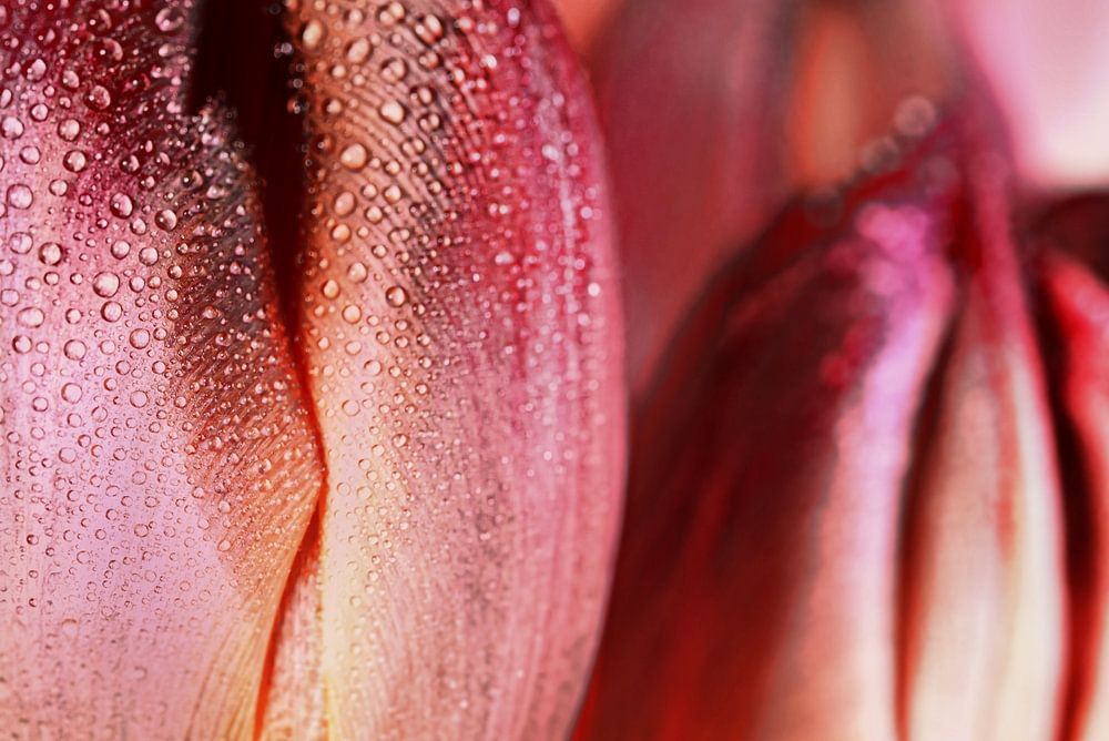Foto Abstraktion Makro von Blüten von Tulpen in rosa mit Wassertropfen