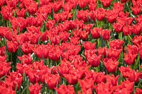 Bestelle das Foto rote Tulpen in einem Tulpenfeld von W J Kok als Reproduktion auf Leinwand, Alu-Dibond, als Poster, Fototapete oder Acrylglasbild.