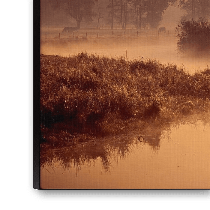 Ein warm gefärbter Sonnenaufgang mit Bodennebel . der Schwan im Bild vervollständigt das Bild . Ich kann mir dieses Bild stundenlang ansehen.