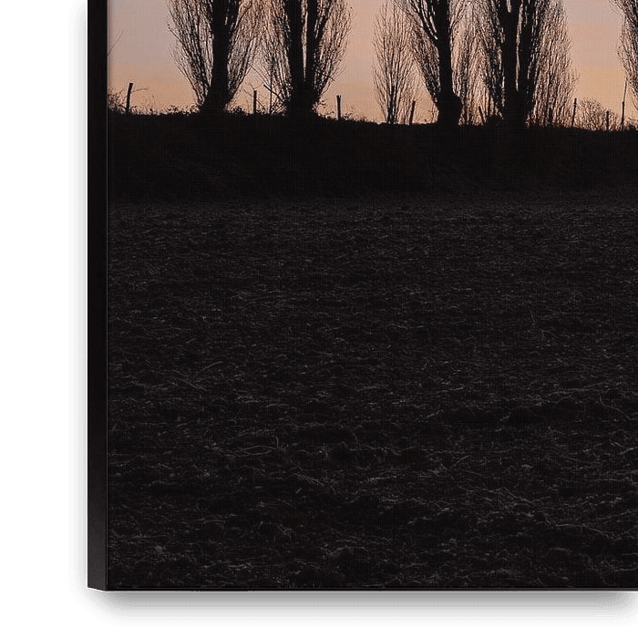 Bestelle dieses Landschafts-Wandbild schöner Sonnenaufgang in der Toskana in der Nähe der typischen Pappelbäume von Kim Willems als Reproduktion auf Leinwand, Alu-Dibond, als Poster, Fototapete oder Acrylglasbild.