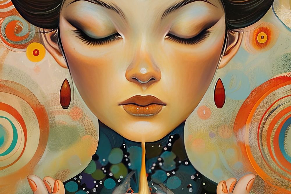Frau mit Lotosblume MeditationEgon Zitter Japanisches Porträt malerischEgon Zitter