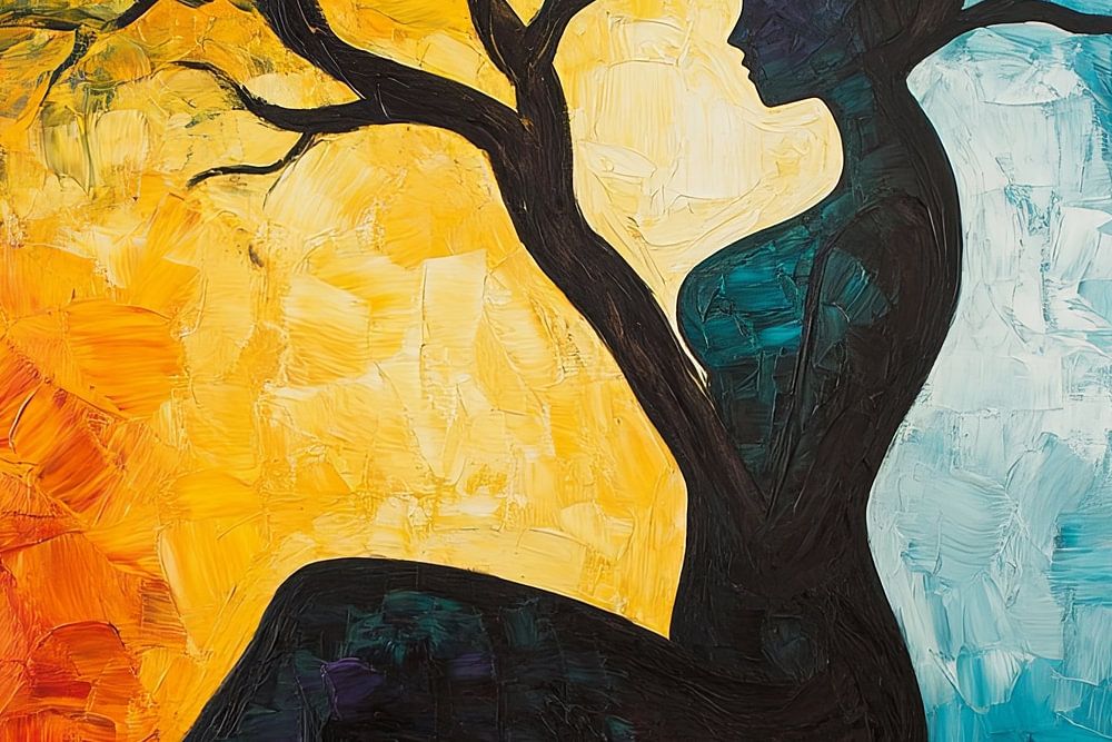 digitales spirituelles meditatives fiktives Gemälde, das den Menschen in der Natur darstellt