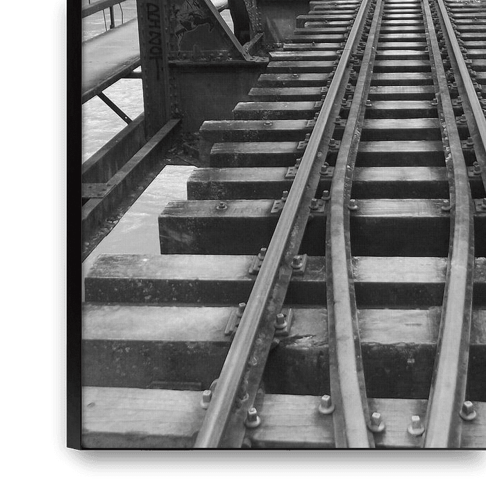 Bestelle das Foto spoorweg naar niemandsland von Leen Denckens als Reproduktion auf Leinwand, Alu-Dibond, als Poster, Fototapete oder Acrylglasbild.