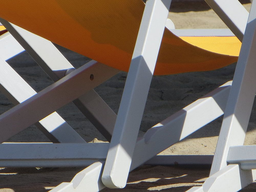 lege strandstoelen op het zandstrand in Forte dei Marmi, Pietrasanta, Italië