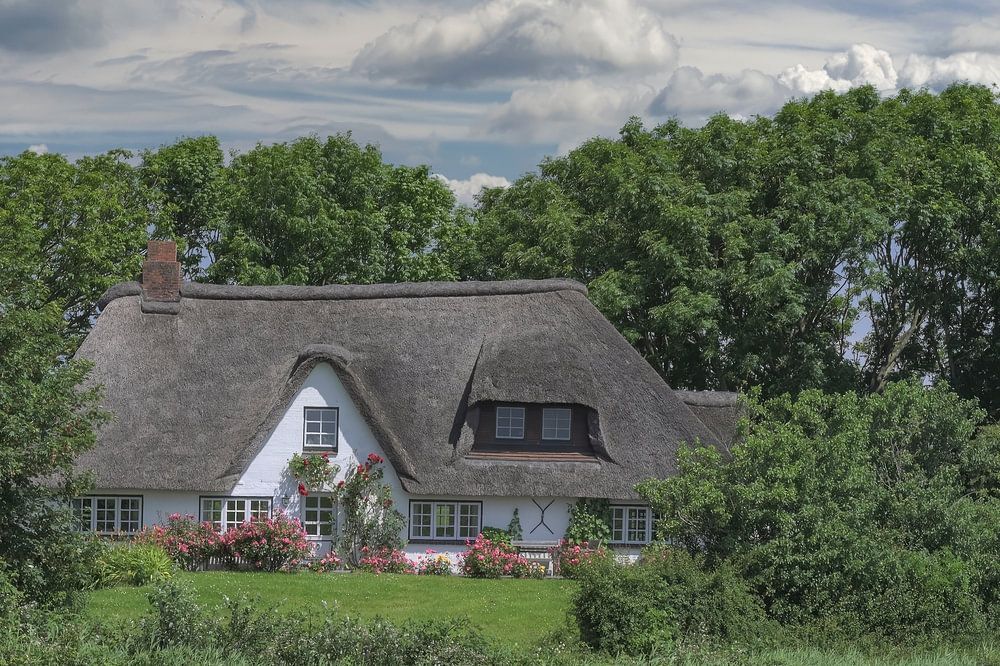Landschaft mit traditionellem Bauernhaus genannt Haubarg,Halbinsel Eiderstedt,Nordfriesland,Nordsee,Schleswig-Holstein,Deutschland