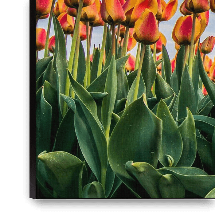 Bestelle dieses Blumen-Wandbild tulpen bij ondergaande zon 01 von Arjen Schippers als Reproduktion auf Leinwand, Alu-Dibond, als Poster, Fototapete oder Acrylglasbild.
