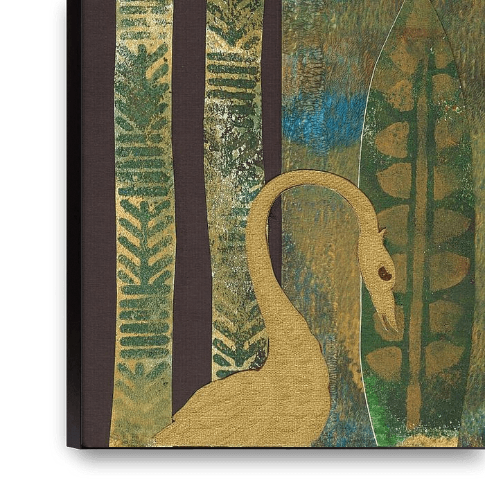 Nennen Sie es Mixed Media, nennen Sie es Collagen: Was ich mache, ist das, was die Arbeit selbst verlangt. Manchmal viele Bilder, manchmal gezeichnet und koloriert, manchmal ein Hintergrund aus Aquarellfarben, manchmal aus Gelli-Drucken, manchmal mit Schablonen, manchmal mit Text. Manchmal ist eine Farbe der Ausgangspunkt, manchmal ein bestimmtes Bild, manchmal ein Text, eine Geschichte oder einfach das Bedürfnis, Motive zu färben oder sogar Nadel und Faden zu benutzen. So…