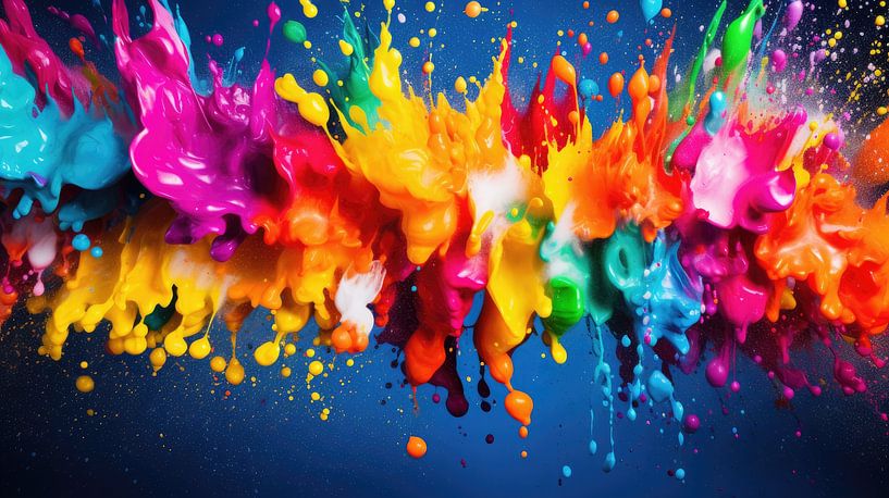 Eine abstrakte Darstellung eines explodierenden Spektrums, in dem warme und kühle Farben in einer wunderschönen Farbexplosion aufeinandertreffen.