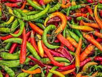 Bunte Chillies Angebot auf dem Wochenmarkt