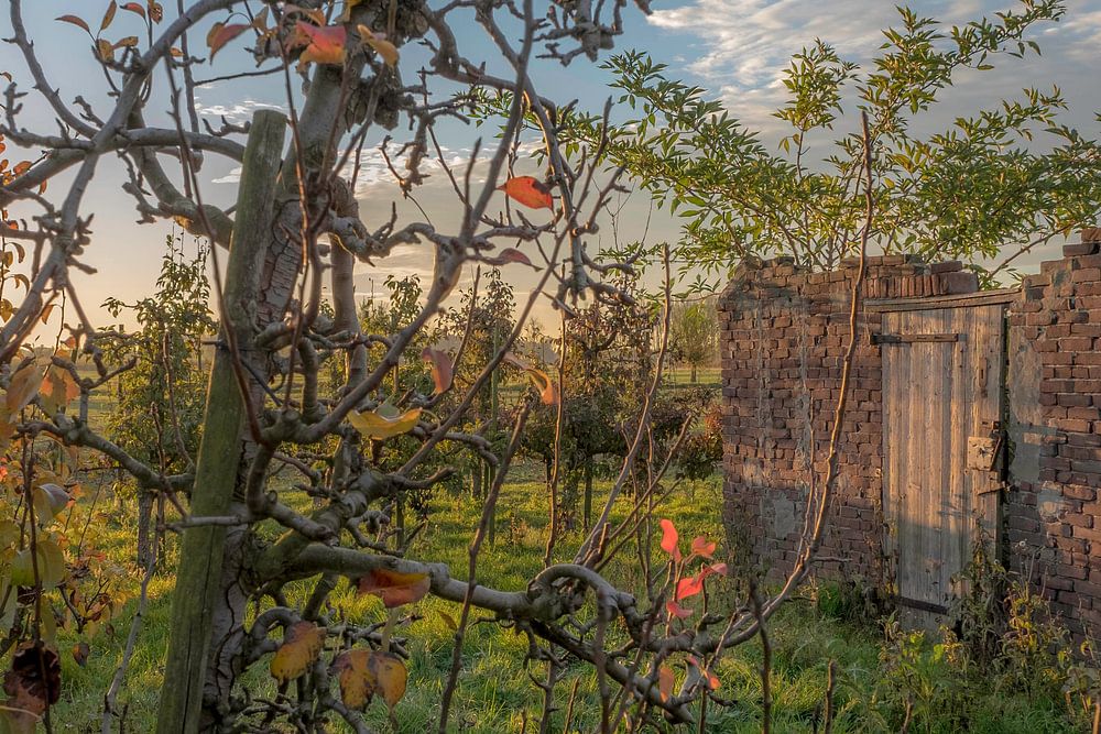 vervallen schuurtje in fruitboomgaard