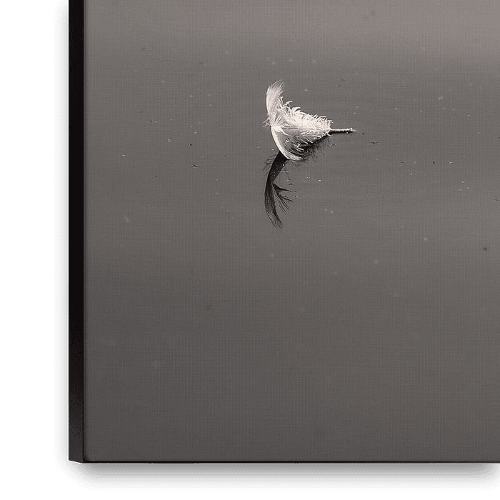 Bestelle dieses Vögel Wandbild weiße Feder auf dem Wasser von Sandra Hogenes als Reproduktion auf Leinwand, Alu-Dibond, als Poster, Fototapete, ArtFrame oder Acrylglasbild, maßgefertigt in höchster Qualität.