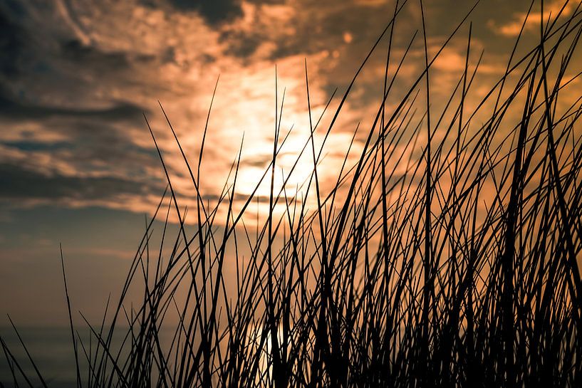 Sonnenuntergang, können Sie dies durch das Dünengras sehen