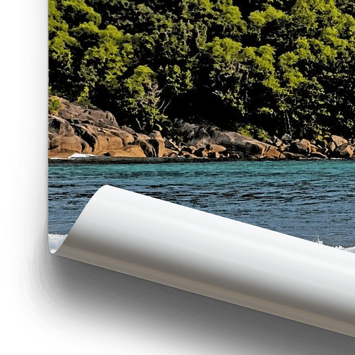 Bestelle dieses Landschafts-Wandbild Aquarell Anse Takamaka Beach - Mahé (Seychellen) von t.ART als Reproduktion auf Leinwand, Alu-Dibond, als Poster, Fototapete oder Acrylglasbild.