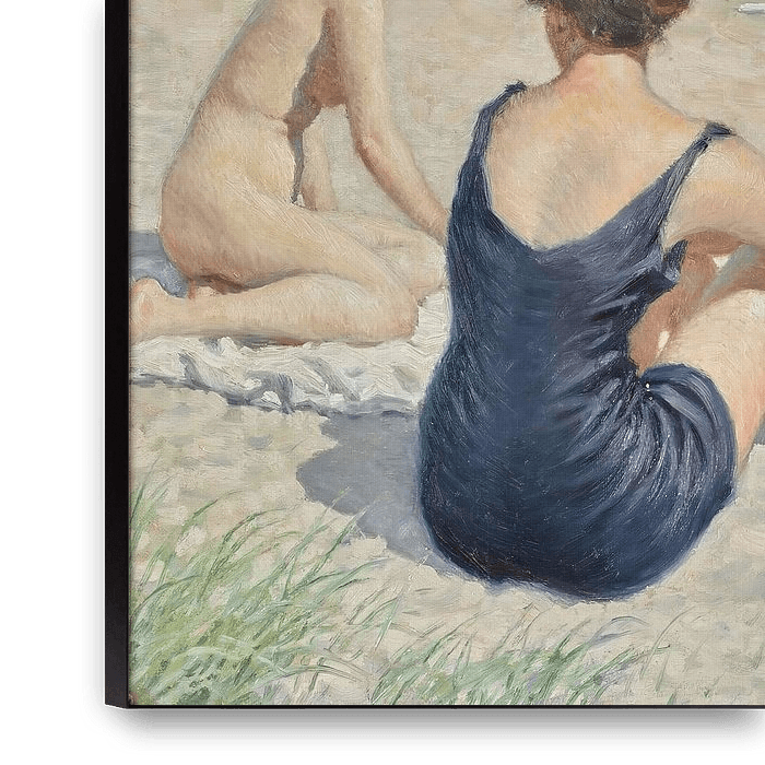 Bestelle diese Malerei Badegäste am Strand, Falsterbo von Peter Balan als Reproduktion auf Leinwand, Alu-Dibond, als Poster, Fototapete oder Acrylglasbild.
