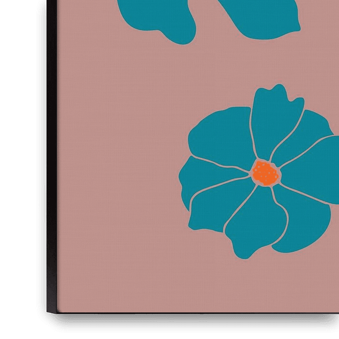 Einfache, halb abstrakte Blumenmotive in einer retro-inspirierten Farbpalette.